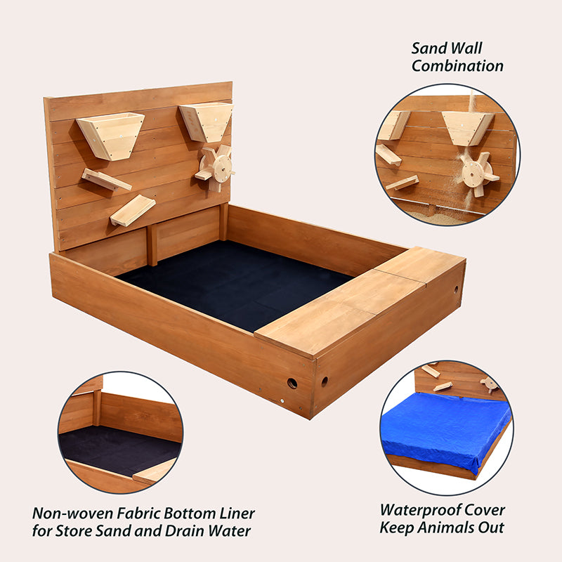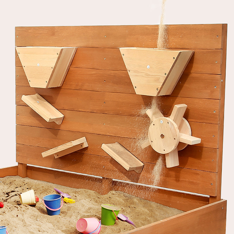 - Sand wall with a combination of runner and hourglass, and the sandbox has a large capacity for 2-3 children to play at the same time. The bottomless design expands the playing space.