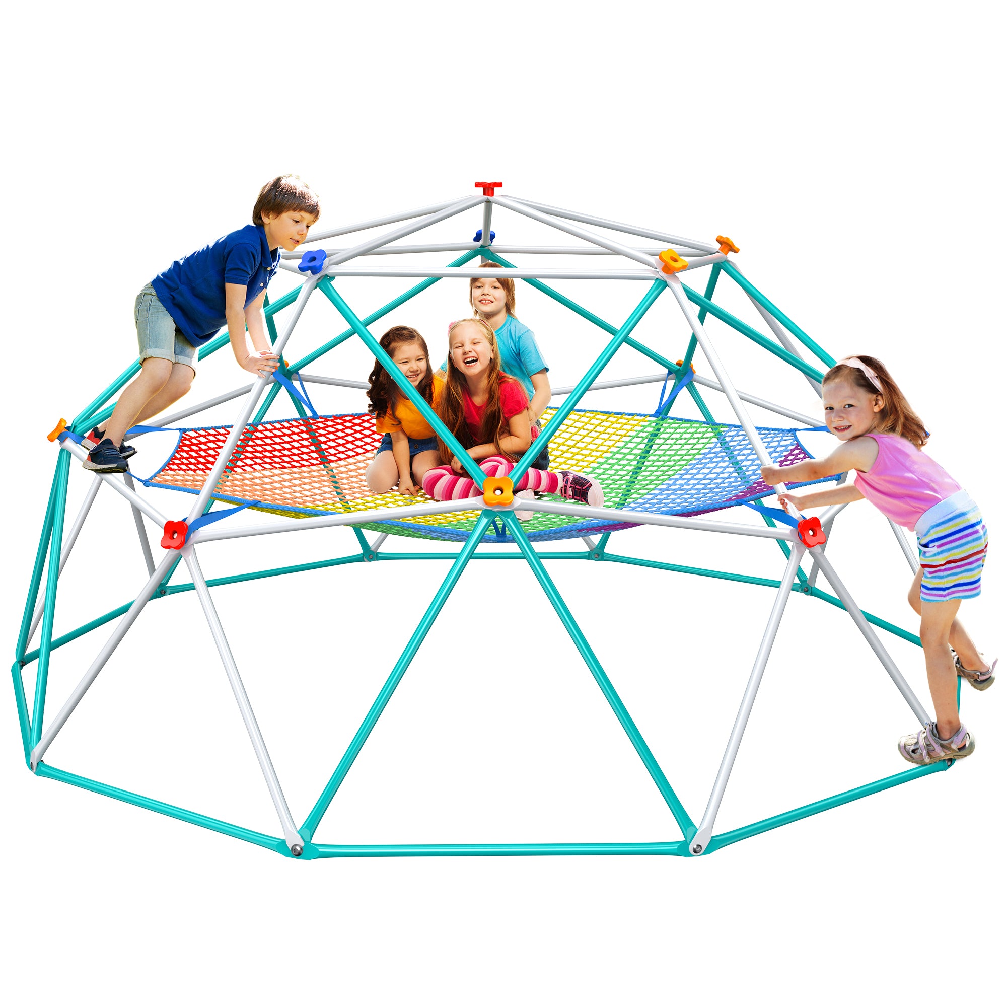 KloKick 10ft Dome Climber for Kids – Backyard Jungle Gym with Hammock, Climbing Cargo Net, and Monkey Bars for Outdoor Play