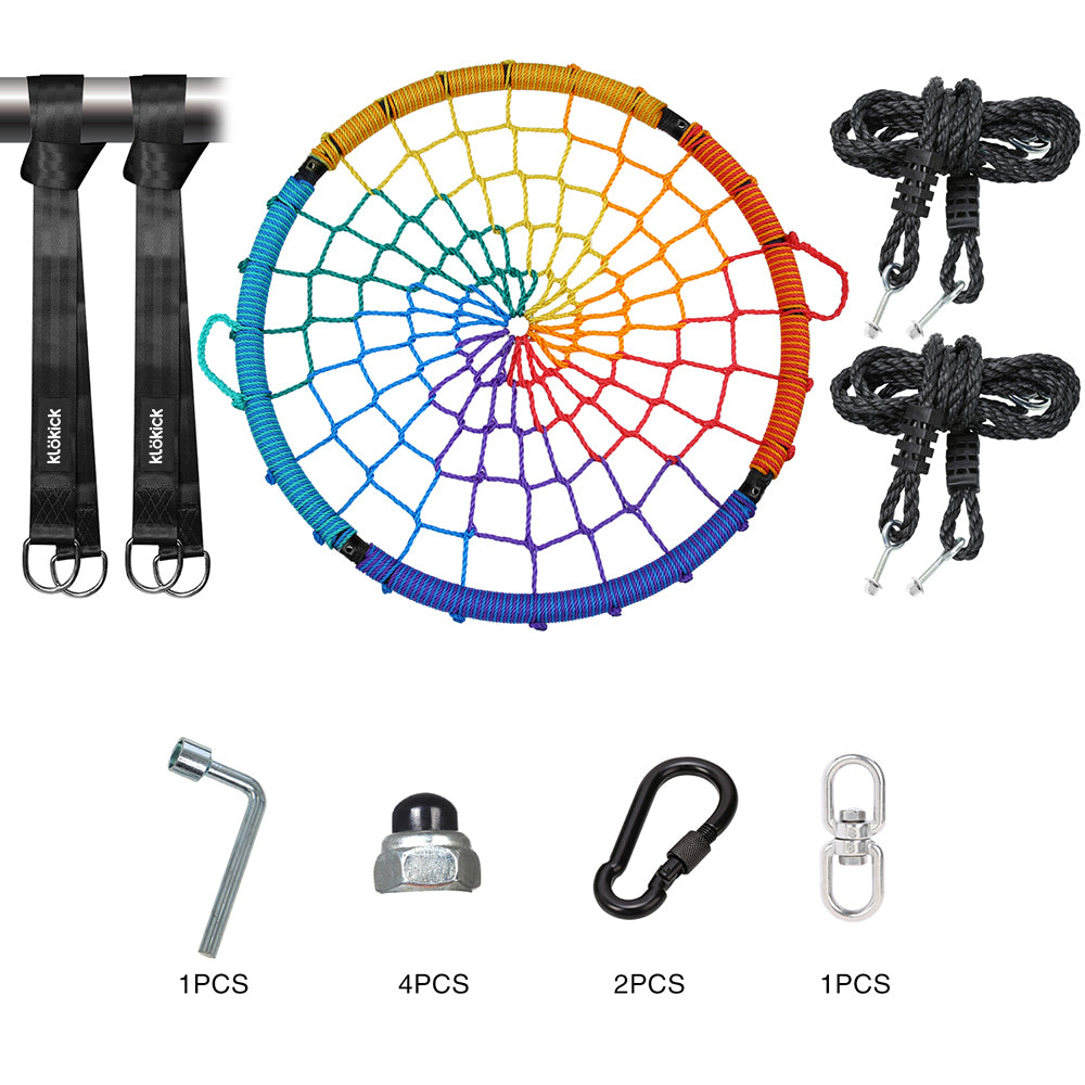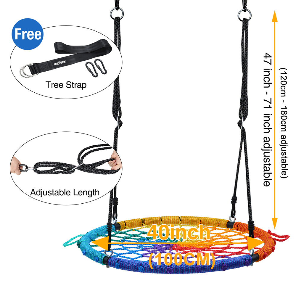 100CM Tree Swing Colorful Spider Web Hanging Saucer for Kids Playground