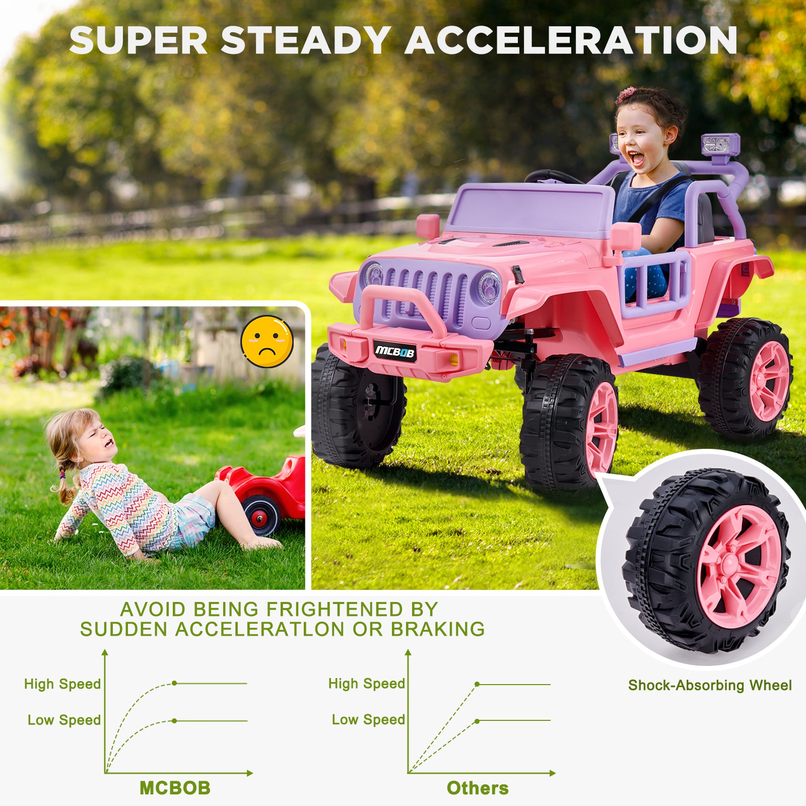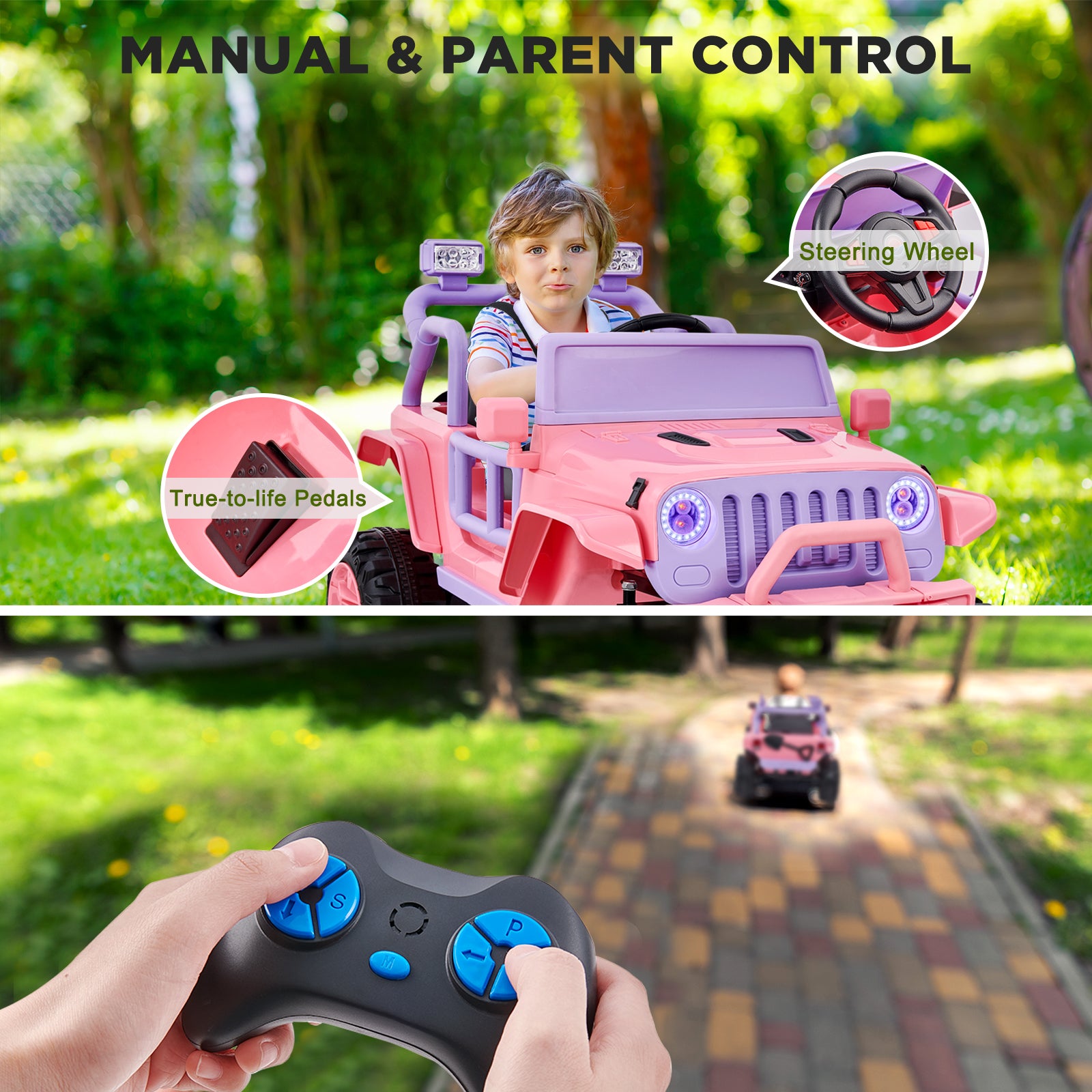 Larger Wheels Kids Electric Ride On Car with 12V Powerful Battery and Remote Control - Pink